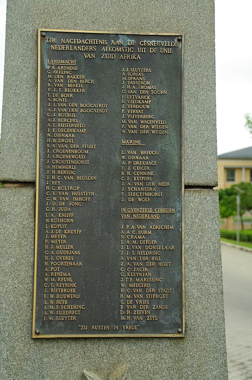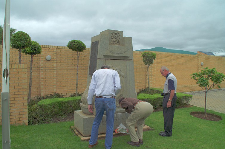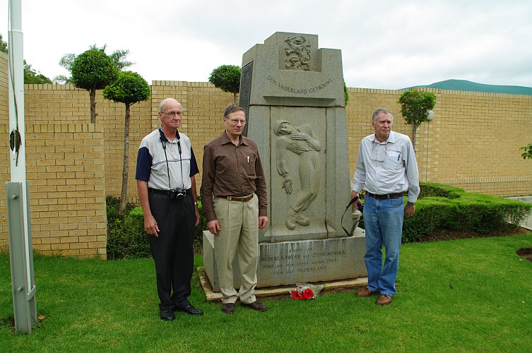 Monument op het terrein van de Nederlandse ambassade te Pretoria Op 30 januari 2010 was ik in de gelegenheid, in Pretoria, het monument voor de gevallen Nederlanders, die in de Tweede Wereldoorlog vanuit Zuid-Afrika dienst hebben genomen, te bezoeken. Er wonen daar, voor zover nu bekend, 3 zonen van omgebrachte agenten van het Englandspiel. Zij zijn vermeld op een monument dat geplaatst is op het terrein van de Nederlandse Ambassade. Met een van hen, Arie de Kruijff, heb ik reeds enige tijd contact. Hij heeft gezorgd dat er iemand van de ambassade aanwezig was om ons de gelegenheid te bieden daar op zaterdag een bloemetje te leggen. Zijn vrouw Tine heeft voor dat bloemetje gezorgd. Ook Jake van der Wilden, de zoon van Willem van der Wilden was er bij. Zijn bestaan was mij pas 2 weken van tevoren bekend. Een waarlijk unieke gelegenheid enkele van de agenten daar te mogen herdenken en hun zonen te mogen ontmoeten. Er woont ook nog een zoon van Freek Rouwerd in Zuid-Afrika. Hij was door ziekte verhinderd daarbij aanwezig te zijn.