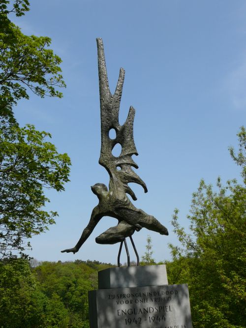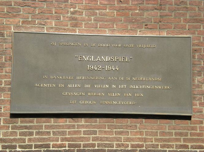 'Englandspiel Monument' bij de Scheveningse bosjes Hier vindt op 4 mei s-middags om half 4 de jaarlijkse herdenking plaats. Plaquette op het Binnenhof Monument op het landgoed 'Clingendael'