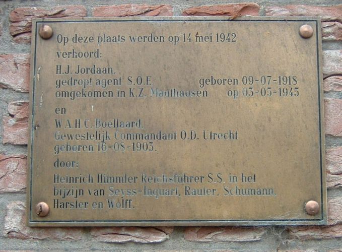 Een gedenkplaat in de Beukenstein waar vanaf 1942 het hoofdbureau van de Abwehr (Giskes) was. Het oorspronkelijke gebouw is afgebroken en vervangen. |
