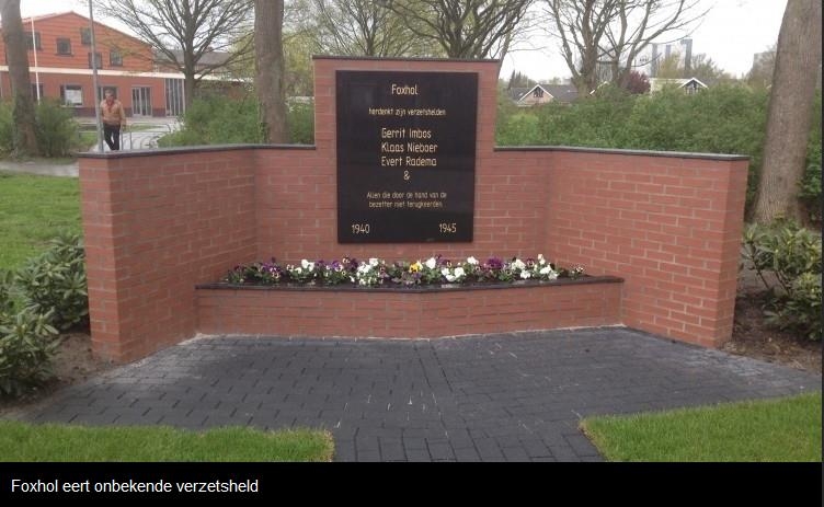 Foxhol 8. Op het monument staan 3 verzetsmensen uit Foxhol. Een ervan is agent Evert Radema (foto: RTV Noord) |