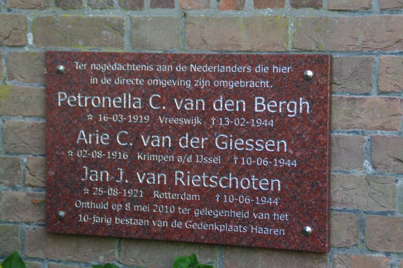 Haaren 6. Een gedenkplaat voor de agenten Aat van der Giessen en Jan Jacob van Rietschoten |