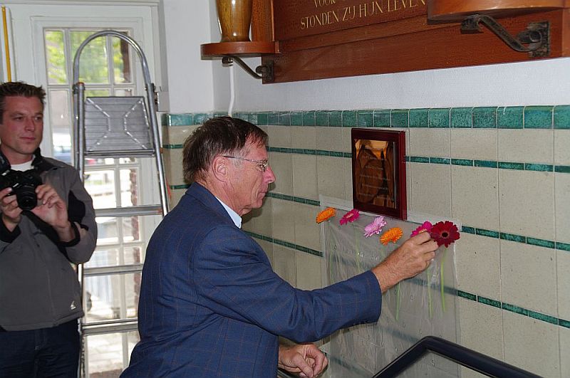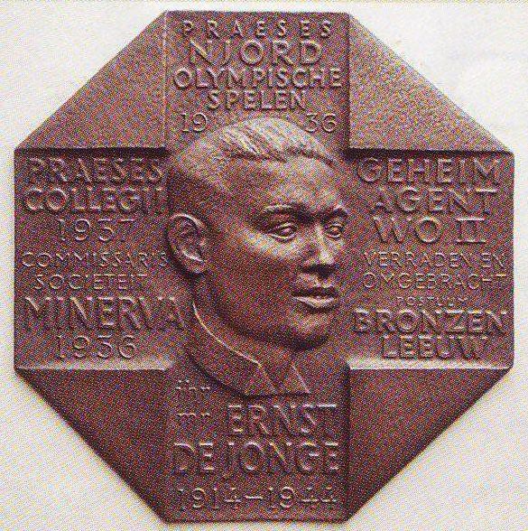 Leiden 7. Op 9 maart 2012 is in het Minerva gebouw in Leiden, door de 100 jarige Marien de Jonge, een plaquette onthuld voor zijn sinds september 1944 vermiste broer Ernst de Jonge. |