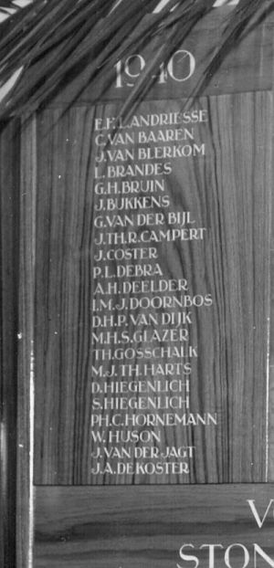 Vlissingen 1. Op de HBS is na de oorlog een gedenkplaat aangebracht met daarop de namen van de gevallen Vlissingers. (Weet u er meer van mail me deze gegevens om ze op de site te vermelden.) |